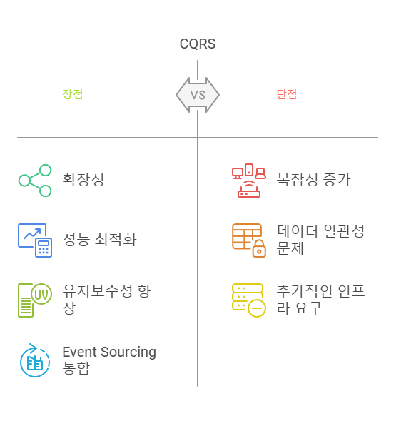 - 읽기와 쓰기 모델을 분리함에 따라 개발 및 운영 복잡도가 증가한다.